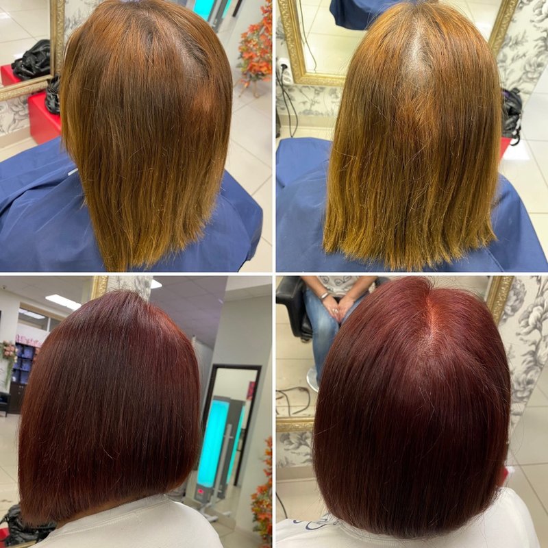 Очень довольна мастером Алиной! Она спокойная и внимательно относится к моим просьбам. Сделали отличное окрашивание и стрижку - подбирали цвет краски, так как у меня седые волосы, использовали пенку, пудру, витаминный комплекс. Также был массаж головы и укладка.